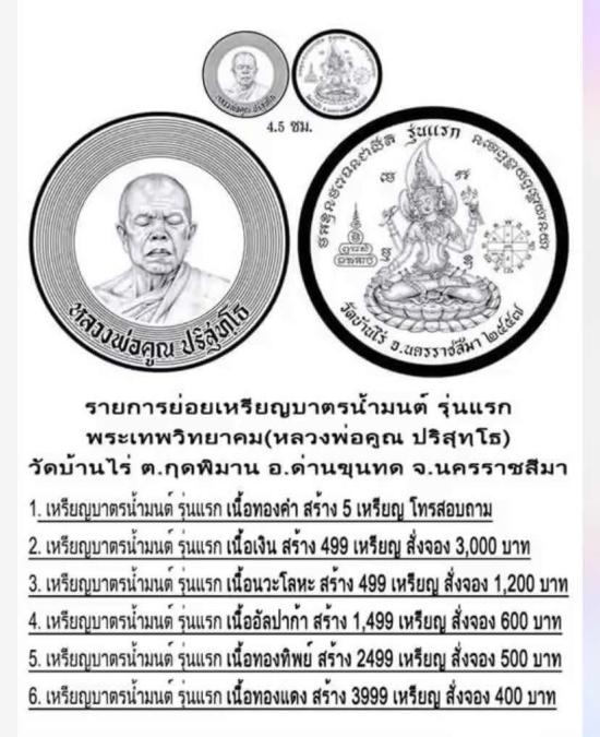 เคาะเดียวแดง ++++++++ เหรียญบาตรน้ำมนต์ รุ่นแรก หลวงพ่อคูณ |