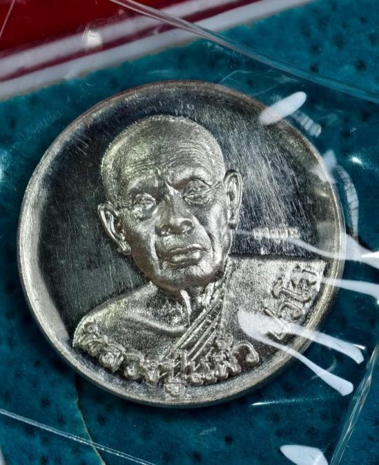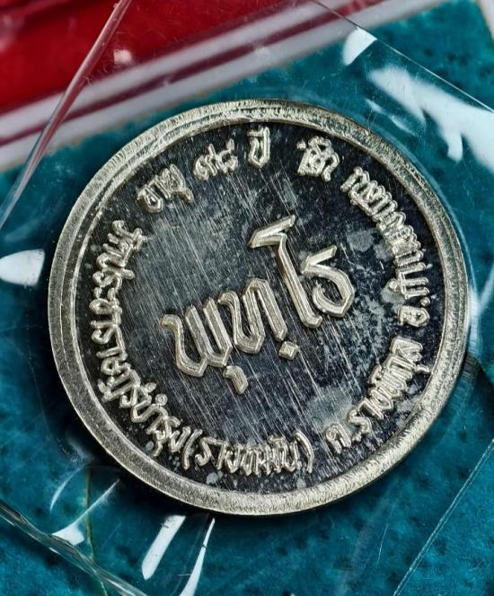 เหรียญหลวงปู่แผ้ว ปวโร อายุ 98 ปี รุ่นพุทโธ ที่ระลึกอายุ ๙๘ ปี เนื้อเงิน รายละเอียดคมชัดลึก สวยๆพร้อมกล่องเดิม