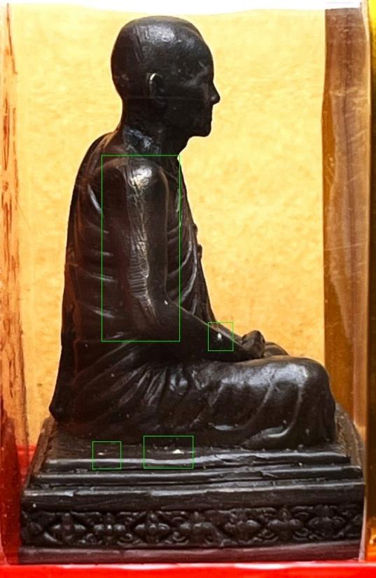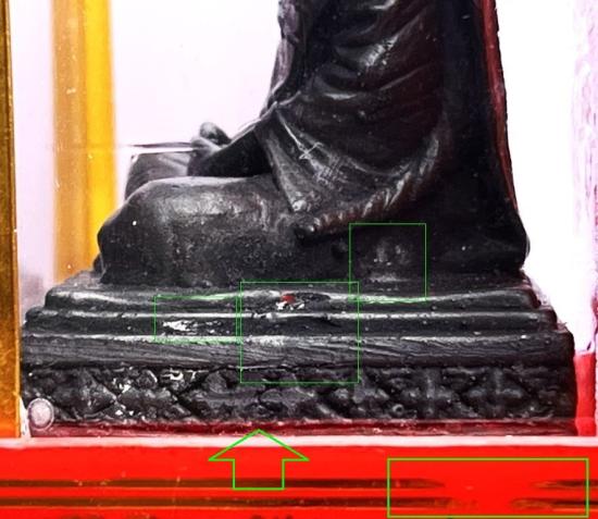 - มือ+สังฆาฑิ ฐาน+มุมฐาน มีตำหนิหลายจุด ตามจุดที่วงตามภาพที่2