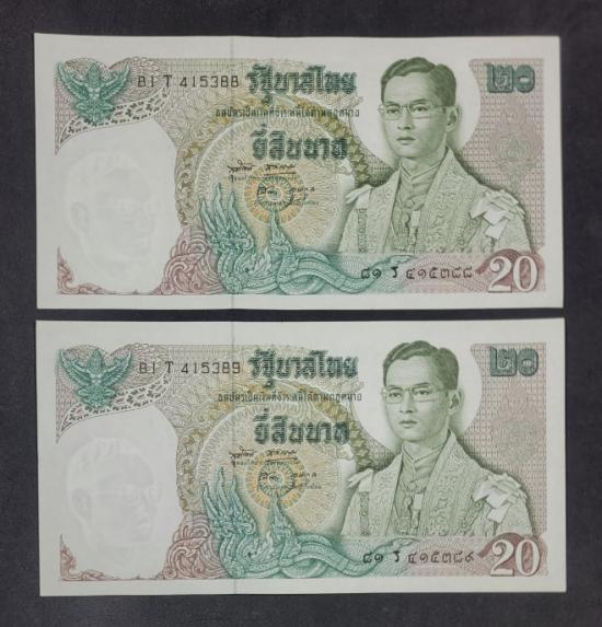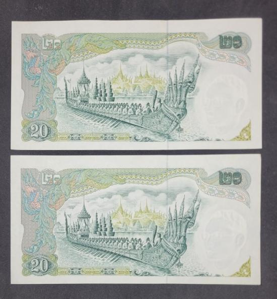 ธนบัตร 20 บาท หลังเรืออนันตนาคราช 2 ฉบับ เลขเรียง |