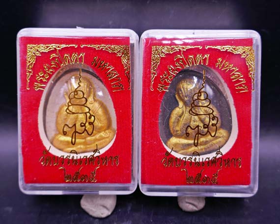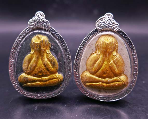 !!!!วัดใจ 9 บาท!!!! 2องค์ พระผงปิดตา มหาลาภ ญสส วัดบวรนิเวศวิหาร พ.ศ.2535 เนื้อผงเกสร(ขาว)ปัดทอง/เนื้อผงใบลาน(ดำ)ปัดทอง กล่องเดิม พร้อมเลี่ยมไมครอนเงินยกซุ้ม |