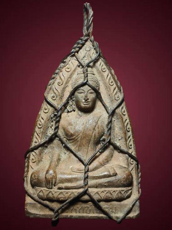 พระพุทธโคดมเนื้อดิน หลวงพ่อขอม วัดไผ่โรงวัว (วัดโพธาราม)จ.สุพรรณบุรี สร้าง พ.ศ.2505 มีถักลวดเก่า