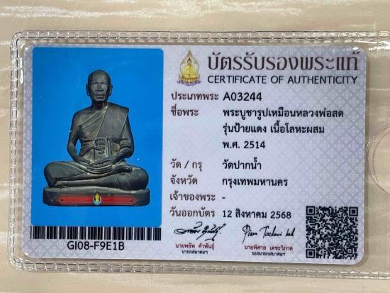 (เคาะแดง7900) +บัตรสมาคม พระบูชาหลวงพ่อสด วัดปากน้ำ สร้างปี2514