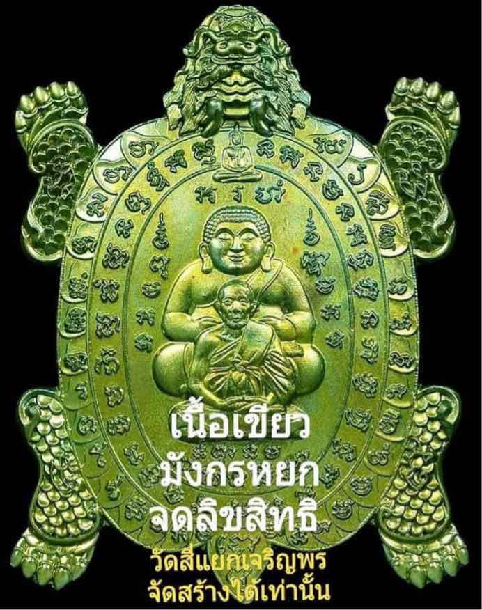 300.- ems เหรียญพญาเต่าเรือน หลวงปู่หลิว ออก วัดสี่แยกเจริญพร นครปฐม ปี 62 รวมพุทธคุณเจริญพร๑๖๘ เขียวมังกรหยก เนื้อเขียวเหล็กไหล แช่น้ำมนต์ หลวงพ่อเล็ก วัดท่าขนุน (สายหลวงพ่อฤาษีลิงดำ) ปลุกเสก |