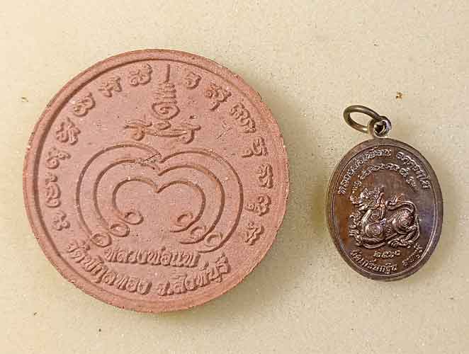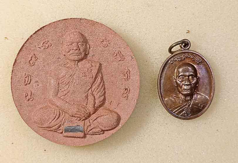 พระรูปหล่อปั้มรุ่นแรก + ผงกลมรูปเหมือน หลวงพ่อแพ + เหรียญหลวงพ่อเพี้ยน ปี 60 |