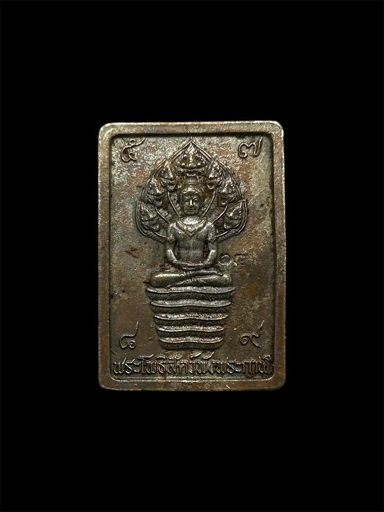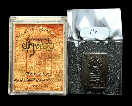 เหรียญพระโพธิสัตว์พังพระกาฬ รุ่น ฝ่าดวง "เนื้อนวโลหะ 2 หน้าแช่น้ำมันเสือ" (มอบผู้ช่วยงาน) เลขสวย "14"