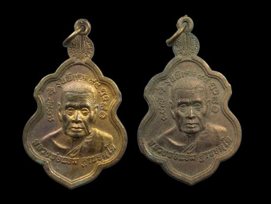 วัดใจ *** เหรียญรุ่นพิเศษอายุ 95 ปี หลวงปู่แย้ม วัดสามง่าม จ.นครปฐม ด้านหลังหลวงพ่อเต๋ เนื้อกะไหล่ทอง ผิวหิ้งๆ 2 เหรียญ