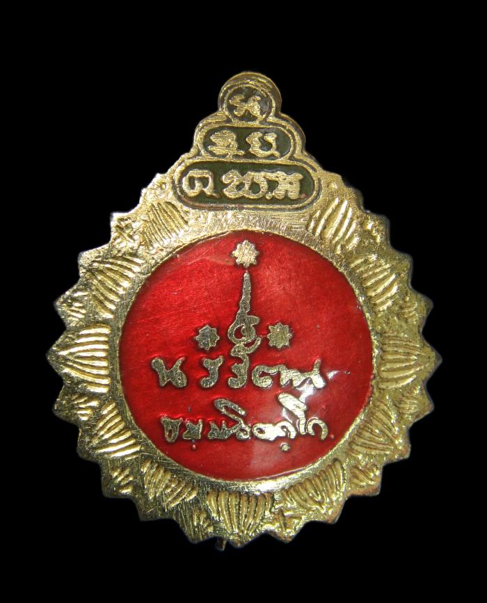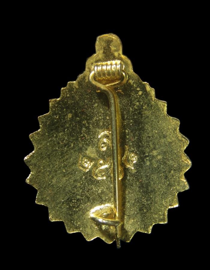 เหรียญเข็มกลัดที่ระลึก ท่านเจ้าคุณนรรัตน์ ธมฺมวิตฺกโก วัดเทพศิรินทร์ กรุงเทพมหานคร เนื้อกะไหล่ทองลงยาแดง ปี 2518