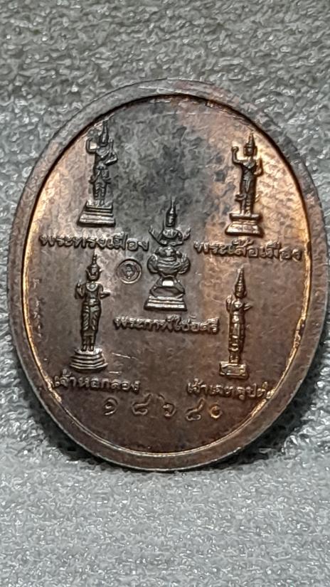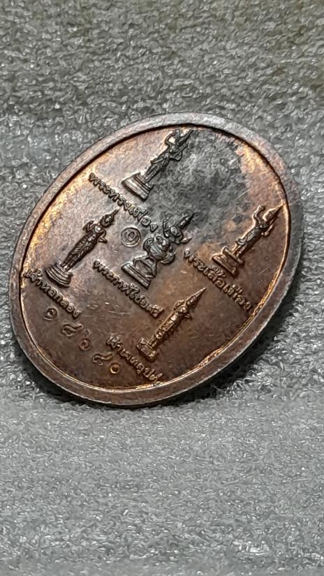 วัดใจเคาะเดียว......100.......เหรียญพระเสื้อเมือง,พระทรงเมือง,พระกาฬไชยศรี,เจ้าพ่อเจตคุปต์ ,เจ้าพ่อหอกลอง,ศาลหลักเมืองกรุงเทพ ครบรอบ 225 ปี ศาลหลักเมือง ปี 2550 ตอกโค๊ต + เลข 18680 เนื้อนวะโลหะ