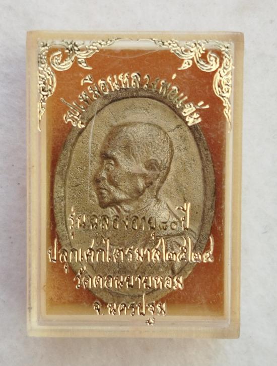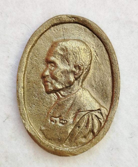 เหรียญหล่อรูปเหมือนหันข้าง หลวงพ่อแช่ม วัดดอนยายหอม เนื้อโละผสม สร้างในวาระ อายุ ๘๒ปี พ.ศ.๒๕๓๐ กล่องเดิม องค์ที่ 2