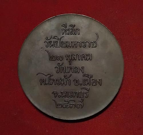 เหรียญบาตรน้ำมนต์ พระบาทสมเด็จพระจุลจอมเกล้าเจ้าอยู่หัว รัชกาลที่ ๕ ออกวัดเพลง จ.นนทบุรี ปี 37 กล่องเดิม