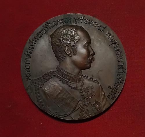 เหรียญบาตรน้ำมนต์ พระบาทสมเด็จพระจุลจอมเกล้าเจ้าอยู่หัว รัชกาลที่ ๕ ออกวัดเพลง จ.นนทบุรี ปี 37 ขนาด 5 ซม. พร้อมกล่องเดิม |