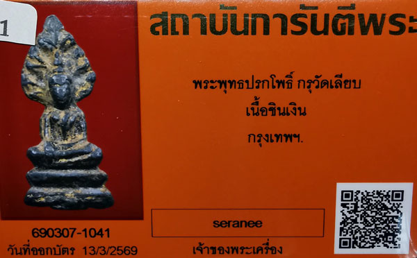 พระพุทธปรกโพธิ์ กรุวัดเลียบ เนื้อชินเงิน จ.กรุงเทพฯ + บัตรG-pra สภาพเดิมค่ะ |