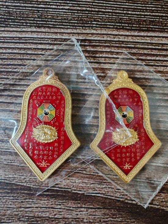 เหรียญกันชง ทรงจำปี เสริมมงคล รุ่น ๕ ปี ๒๕๖๕ หลวงพ่อ อิฎฐ์ วัดจุฬามณี รายการที่ ๑.๑๔ พิมพ์ใหญ่ เนื้อมหาชนวนกาหลั่ยทองลงยาสีแดง 2 เหรียญ ซิลเดิมๆ