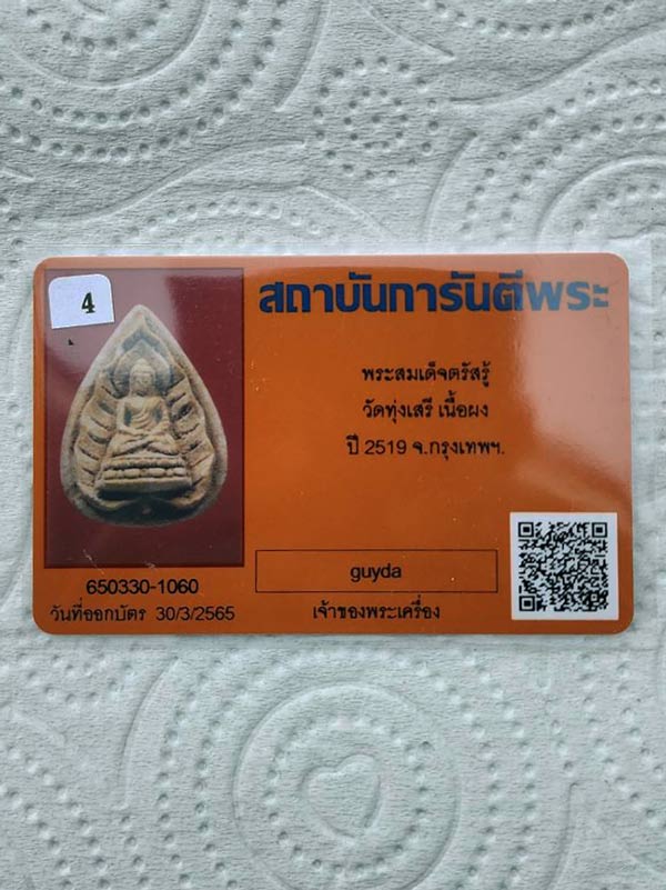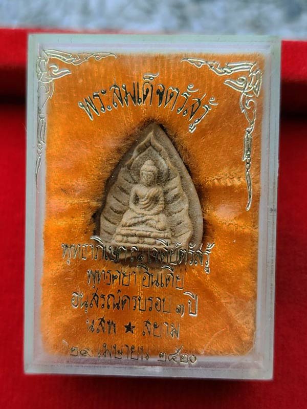 พระสมเด็จตรัสรู้ เนื้อผงพุทธคุณ วัดทุ่งเสรี กรุงเทพ ปี 2519 กล่องเดิม+บัตรพระแท้การันตีพระ