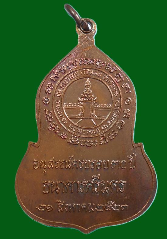 เหรียญพระแก้วศรีนคร ปี 2523 เนื้อทองแดงรมน้ำตาล สร้างในวาระครบ 30 ปี ของธนาคารศรีนคร (ปลุกเสกพิธีใหญ่อาทิ หลวงปู่ดู่ วัดสะแก, หลวงปู่โต๊ะ วัดประดู่ฯ, หลวงปู่ดูลย์ วัดบูรพาราม ฯลฯ) พระสภาพสวยเดิมๆ