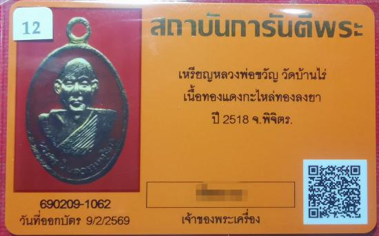 เหรียญ ลพ.ขวัญ วัดบ้านไร่ เนื้อกะไหล่ทองลงยาสีแดง ปี2518 จ.พิจิตร