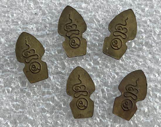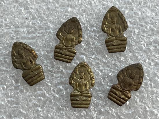 เหรียญปรกใบมะขาม หลวงพ่อ วัดเจดีย์ (ไอ้ไข่เด็กวัดเจดีย์) รุ่นแรก ปี 2556 เนื้อทองฝาบาตร (ปรกมะขามสายเฮงเมืองใต้) สวยเดิม 5เม็ด
