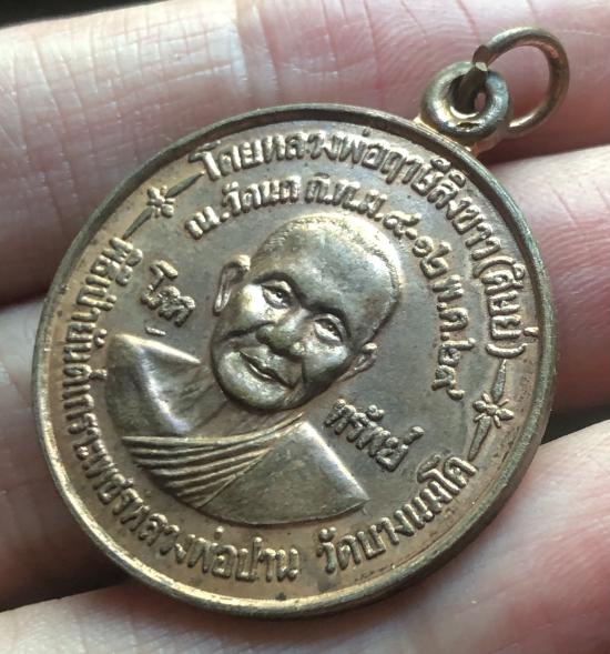 เหรียญโภคทรัพย์ หลวงพ่อปาน วัดบางนมโค หลังยันต์เกาะเพชร หลวงพ่อฤาษีลิงขาว ปลุกเศก วัดนก กทม.ปี 2529 |