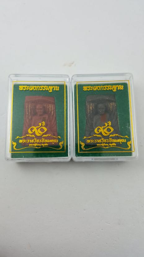 พระผงกรรมฐาน 90 ปี พระราชวัชรปัทมคุณ (หลวงปู่บัวเกตุปทุมสิโร) มวลสารผงกรรมฐาน เกศาและจีวร กดพิมพ์โบราณ เนื้อสีแดง+เนื้อสีดำ2องค์