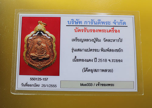"เคาะเดียวบัตรสภาพสวย" เหรียญเสมา8รอบ เนื้อทองแดง ผิวไฟแดงๆเดิมๆ เต็มทั้งหน้าหลัง หลวงปู่ทิม วัดละหารไร่ จมูกโด่ง พร้อมซองเดิม สวยมาก เลี่ยมทองยกซุ้ม พร้อม(บัตรรับรองG-praสภาพสวย)