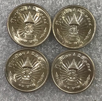 เหรียญเงิน 10บาท ที่ระลึก ครองราชย์25ปี 4เหรียญ UNC สภาพสวย