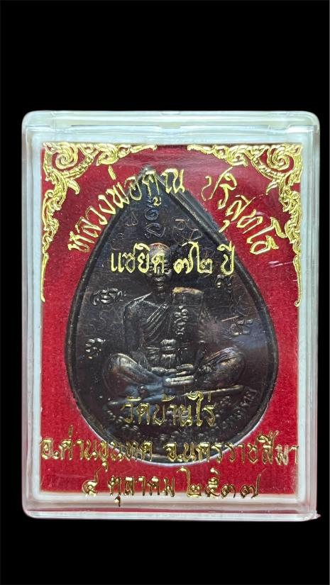 เหรียญหยดน้ำใหญ่ หลวงพ่อคูณ วัดบ้านไร่ ปี2537 หลังหนุมานเชิญธง (ตอกหมายเลข 72) มีจารสวยๆครับ เ |