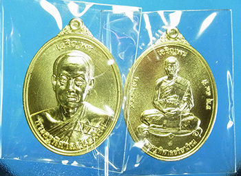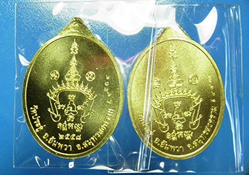 2 เหรียญเจริญพร พระมหาสุรศักดิ์ วัดประดู่พระอารามหลวง จ.สมุทรสงคราม ปี 2558 เนื้อทองฝาบาตร