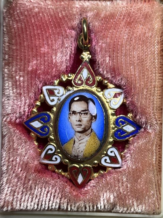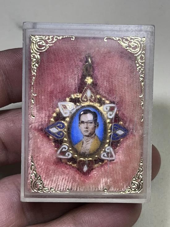 ล็อกเก็ตในหลวงรัชกาลที่9 ตัวเรือนเดิมๆลงยา หลังลายเซ็น พร้อมกล่องเดิมๆ แท้ๆครับ งานปีเก่า