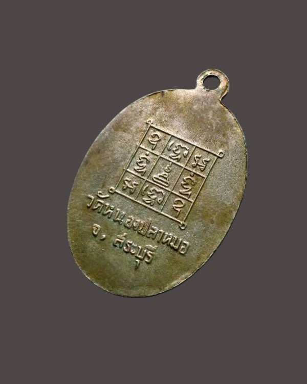 เหรียญรูปไข่เนื้ออัลปาก้าชุบนิกเกิ้ล พิมพ์ 3 ชาย หลวงพ่อยอด อินฺทโชโต วัดหนองปลาหมอ จ.สระบุรี |