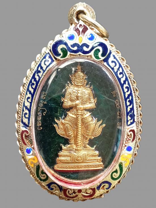 เหรียญท้าวเวสสุวรรณ รุ่นเจ้าสัวกรุงธนบุรี วัดอรุณราชวราราม ปี 2559 แยกชุดกรรมการ No.927 ลงยาสีน้ำเงิน สภาพใช้พร้อมกรอบเงินผสมลงยา |