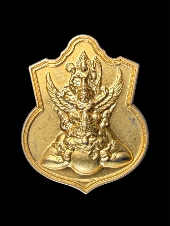 เหรียญพระนารายณ์ทรงครุฑ ประทับพระราหู หลังดวงเมือง รุ่นแรก ปี ๒๕๔๕ กะไหล่ทอง พิมพ์ใหญ่ ตอกโค้ด ไม่มีกล่อง สวยเดิม เจ้าคุณธงชัย วัดไตรมิตรวิทยาราม |