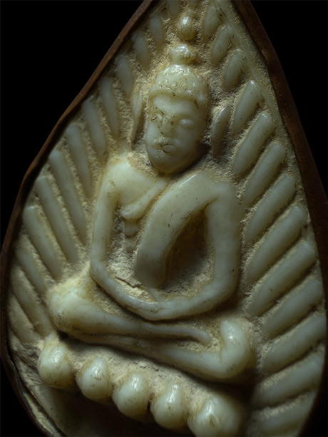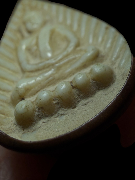 พระเดิมๆ จับขอบเก่าเดิมจากวัด พระกลีบบัว พิมพ์พระพุทธ หลังยันต์ เนื้อพลาสติก สีขาว หลวงพ่อเดิม วัดหนองโพ จ.นครสวรรค์ สร้างประมาณปี ๒๔๙๖