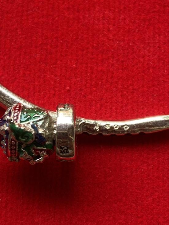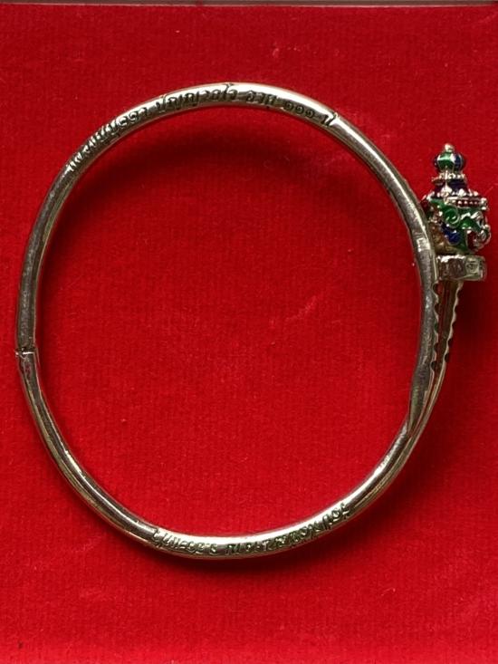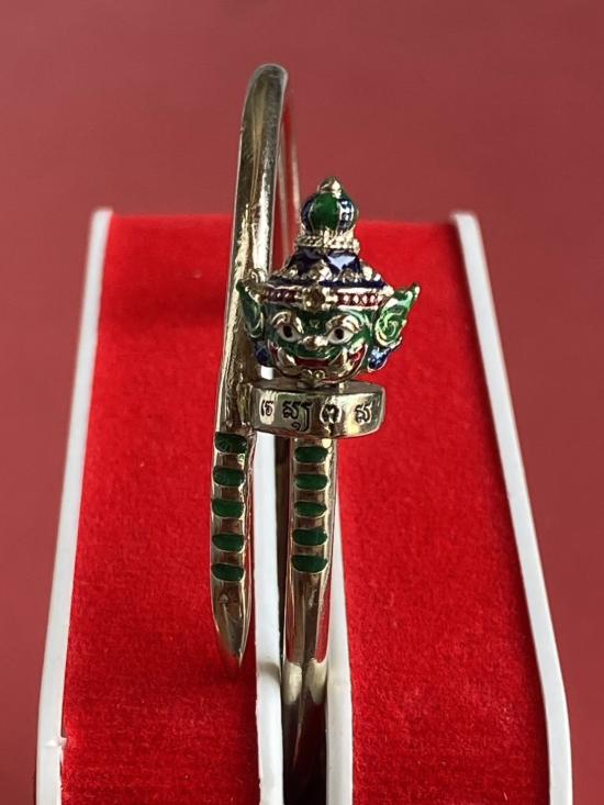 เคาะเดียวแดง หลวงปู่บุดดา กำไลท้าวเวส เนื้อ ทองขาวขัดเงาลงยาเขียว |