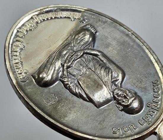 หลวงปู่แผ้ว ที่ระลึกสร้างอุโบสถ พิเศษ กรรมการ ๑ เนื้อเงิน มีคราบดำตามภาพครับ
