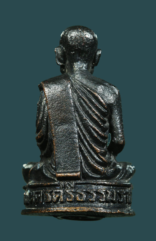 รูปหล่อ พ่อท่านสังข์ อุดกริ่ง แขนทะลุนิยม เนื้อทองแดงรมดำ ปี 2538