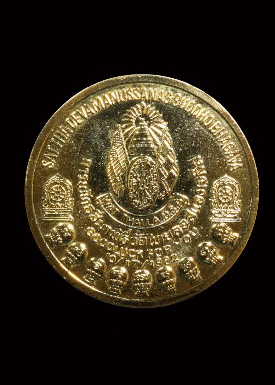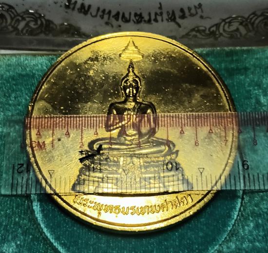 เหรียญพระพุทธนรเทพศาสดา มหามังคลานุสรณ์ มหาอุดมมงคลการพัทธสีมาพิธี วัดไทยลอสแองเจลีส USA. ((( เนื้อกะไหล่ทอง ขนาด 7.5 ซม. ))) หนา 5 มม. สวยผิวเดิม พร้อมกล่องเดิม หายาก