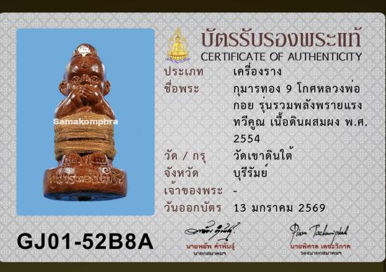 กุมารทองเก้าโกศหลวงพ่อกอย วัดเขาดินใต้ ปี 2554 พิมพ์กลาง พร้อมบัตรรับรองสมาคม