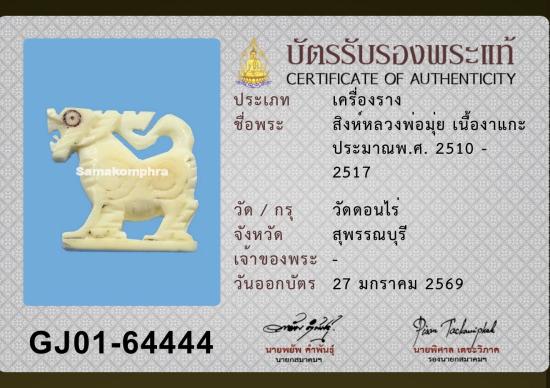 สิงห์หลวงพ่อมุ่ย วัดดอนไร่ เนื้องา ปี 2510-2517 พร้อมบัตรรับรองสมาคม