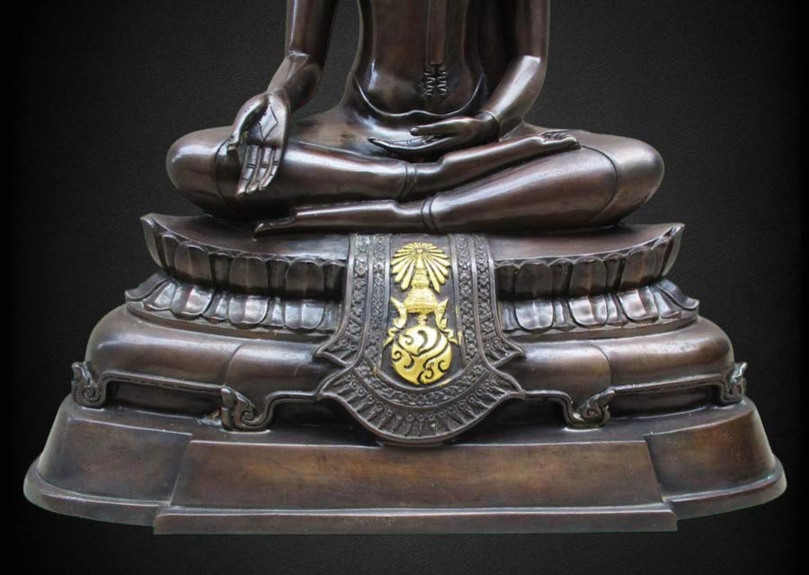 พระพุทธรูปฐานตราสัญลักษณ์ ภปร. ประจำมหาวิทยาลัยนเรศวร จ.พิษณุโลก ในวโรกาสพระบาทสมเด็จพระเจ้าอยู่หัว ภูมิพลอดุลยเดชฯ ครองราชครบ 50 ปี พ.ศ.2539 เนื้อโลหะรมมันปูผิวสวย หน้าตัก 9 นิ้ว ตอกโค๊ต หมายเลข !!
