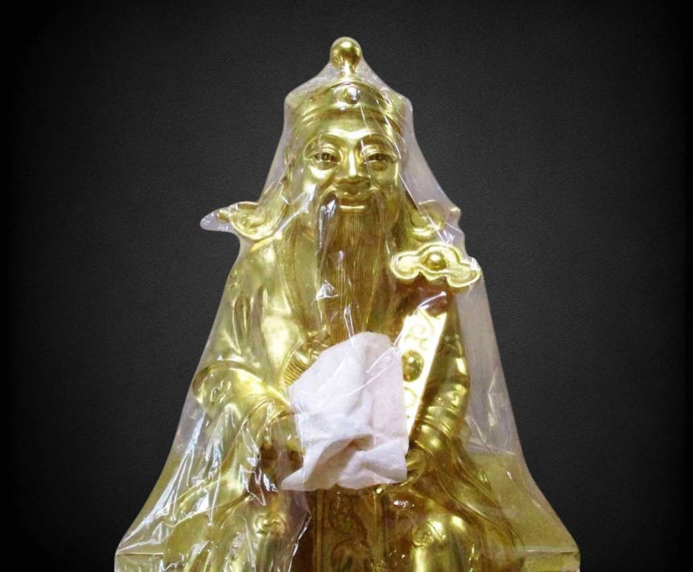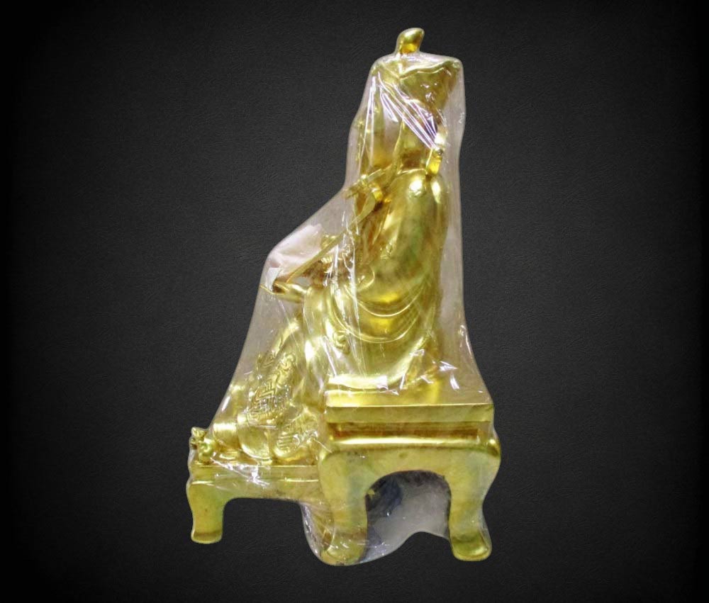 เทพเจ้าแห่งโชคลาภ ไช้ซิงเอี้ย วัดพระพุทธบาทราชวรมหาวิหาร จ.ส ระบุรี พ.ศ.2547 เนื้อโลหะผสมปิดทองคำเปลว ขนาดฐานกว้าง 16 นิ้ ว สูงรวมฐาน 25 นิ้ว