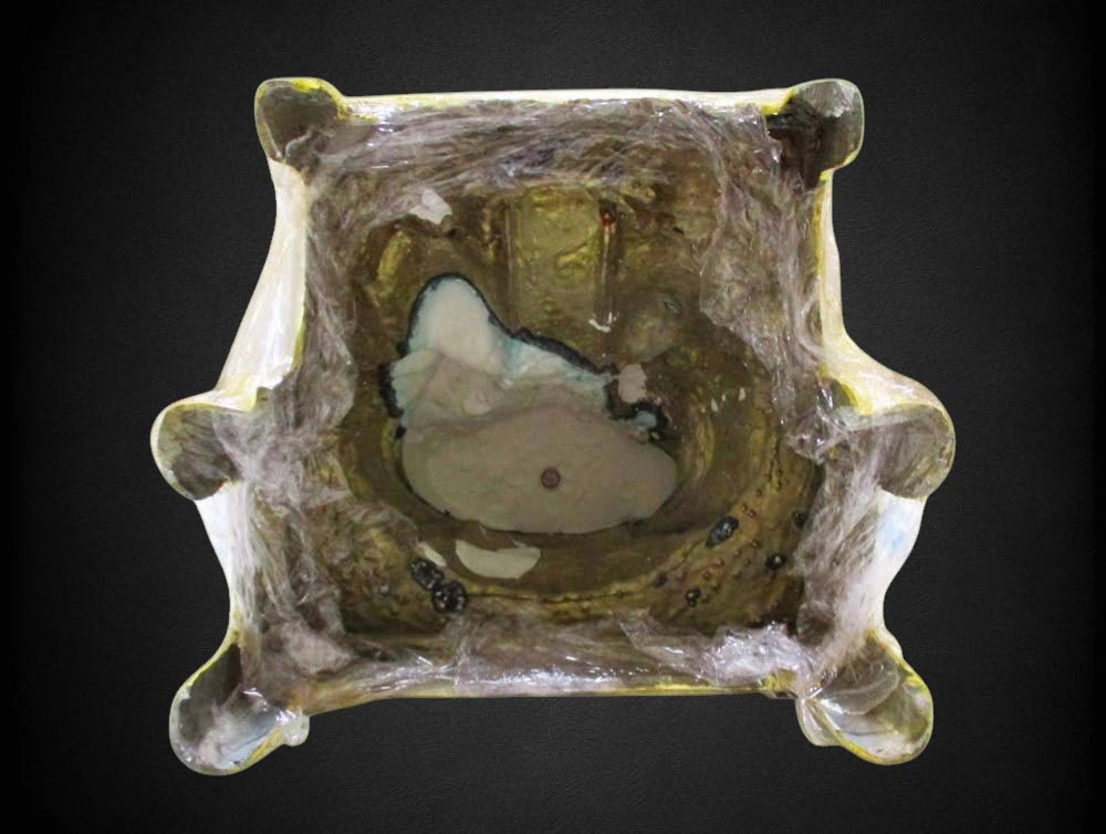 ใต้ฐานอุดปูน ฝังหลอดบรรจุผงมวลสาร !!