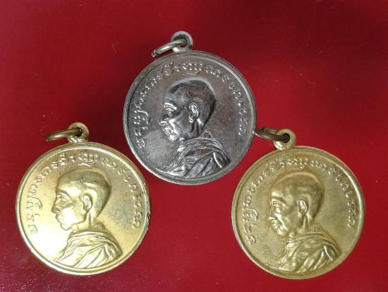 เหรียญสมเด็จพระสังฆราช (เข) วัดบวรนิเวศวิหารกทม. ปี ๒๕๐๘ เนื้อกะไหล่เงิน 1 เหรียญกะไหล่ทอง 2 เหรียญ