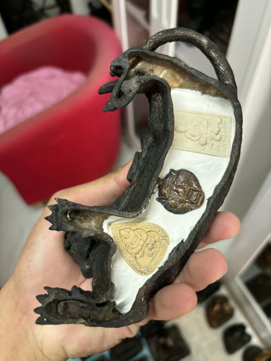 เคาะเดียวแดง หลวงพ่อเปิ่น วัดบางพระ นั่งเสือ ( เสือนอน ) ขนาดยาวเสือ 6 นิ้ว ขนาดหลวงพ่อ 3 นิ้ว ปี 2547