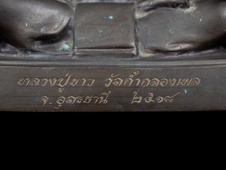 พระบูชารูปเหมือนหลวงปู่ขาว วัดถ้ำกลองเพล รุ่นสาม ปี 2518 จ.อุดรธานี เนื้อทองเหลือง หน้าตัก 5นิ้ว มีบัตรรับรอง GPRA