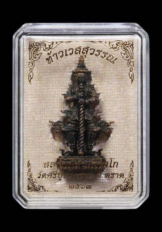 รูปหล่อท้าวเวสสุวรรณ "รุ่นแรก" เนื้อเหล็กน้ำพี้แช่น้ำมันงาเสก หมายเลข96 พระครูสังฆกิจบูรพา(หลวงปู่บัว ถามโก) วัดศรีบุรพาราม(เกาะตะเคียน) จ.ตราด