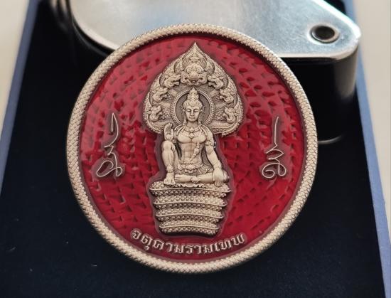 เหรียญจตุคามรามเทพ รุ่นดวงดี159 เนื้ออัลปาก้าซาตินลงยาแดง No.๒๒ พร้อมกล่องเดิม ขนาดเหรียญ 2.8 cm. |