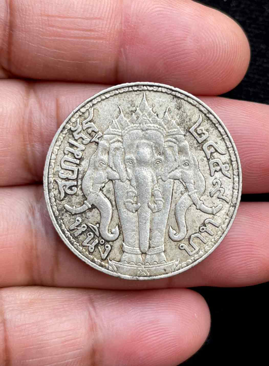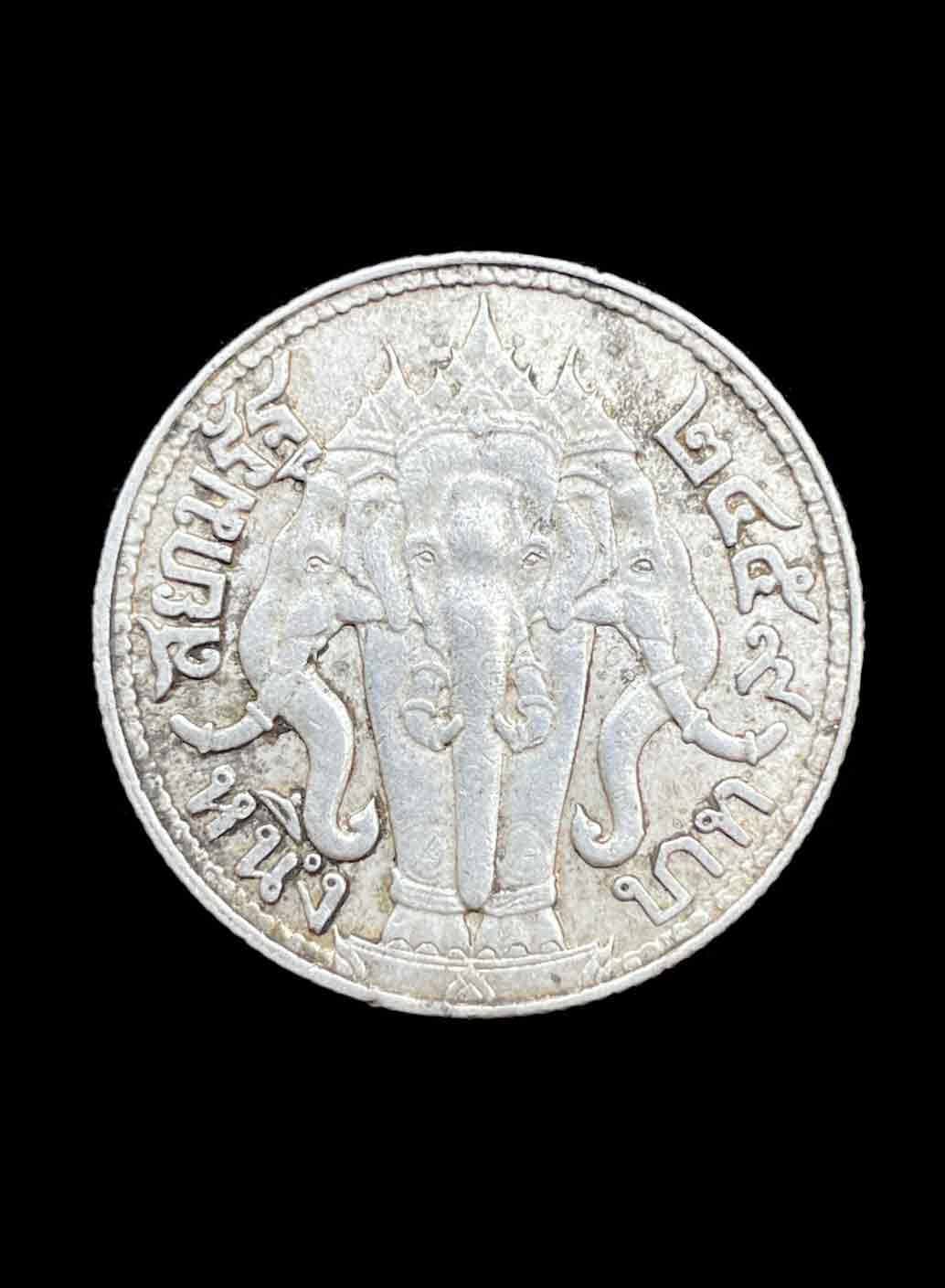 เหรียญเงิน 1 บาท รัชกาลที่ 6 หลังช้างสามเศียร ปี 2459 เนื้อเงิน (น้ำหนัก 15 กรัม)