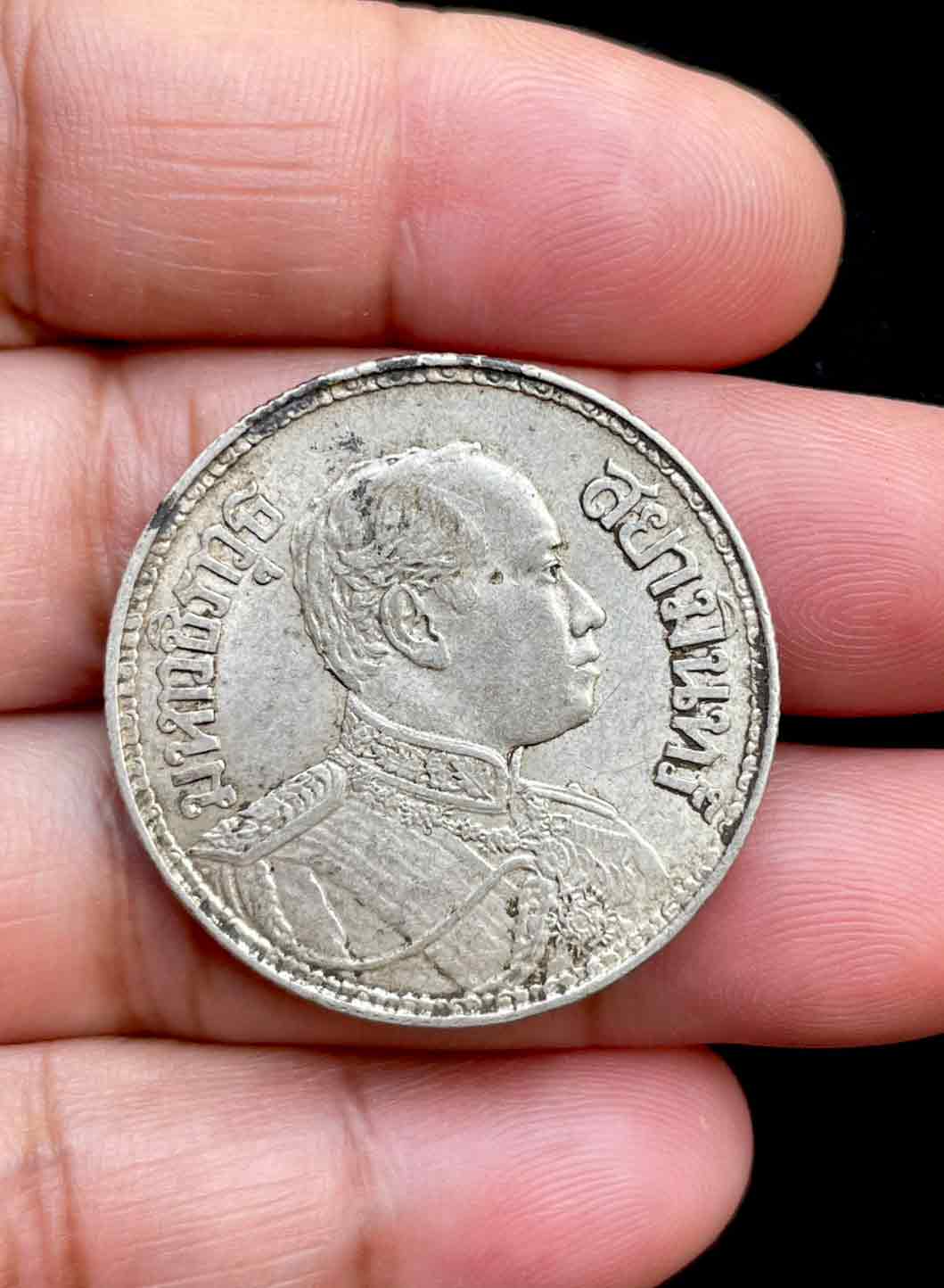 วัดใจ เหรียญเงิน 1 บาท รัชกาลที่ 6 หลังช้างสามเศียร ปี 2459 เนื้อเงิน (น้ำหนัก 15 กรัม) ##18