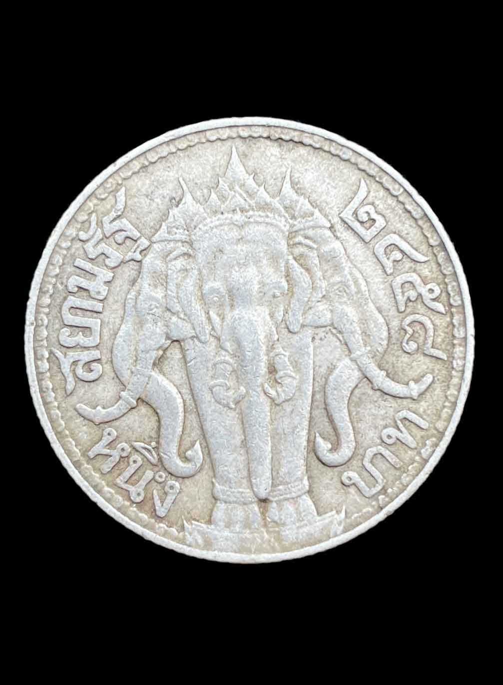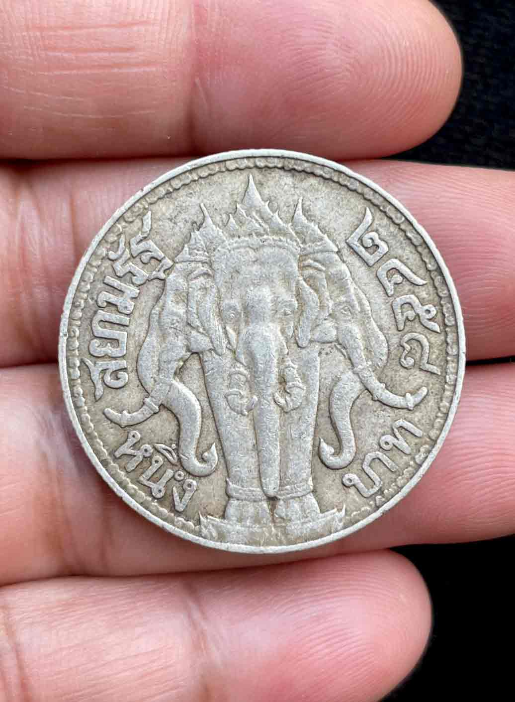 เหรียญเงิน 1 บาท รัชกาลที่ 6 หลังช้างสามเศียร ปี 2458 เนื้อเงิน (น้ำหนัก 15 กรัม)